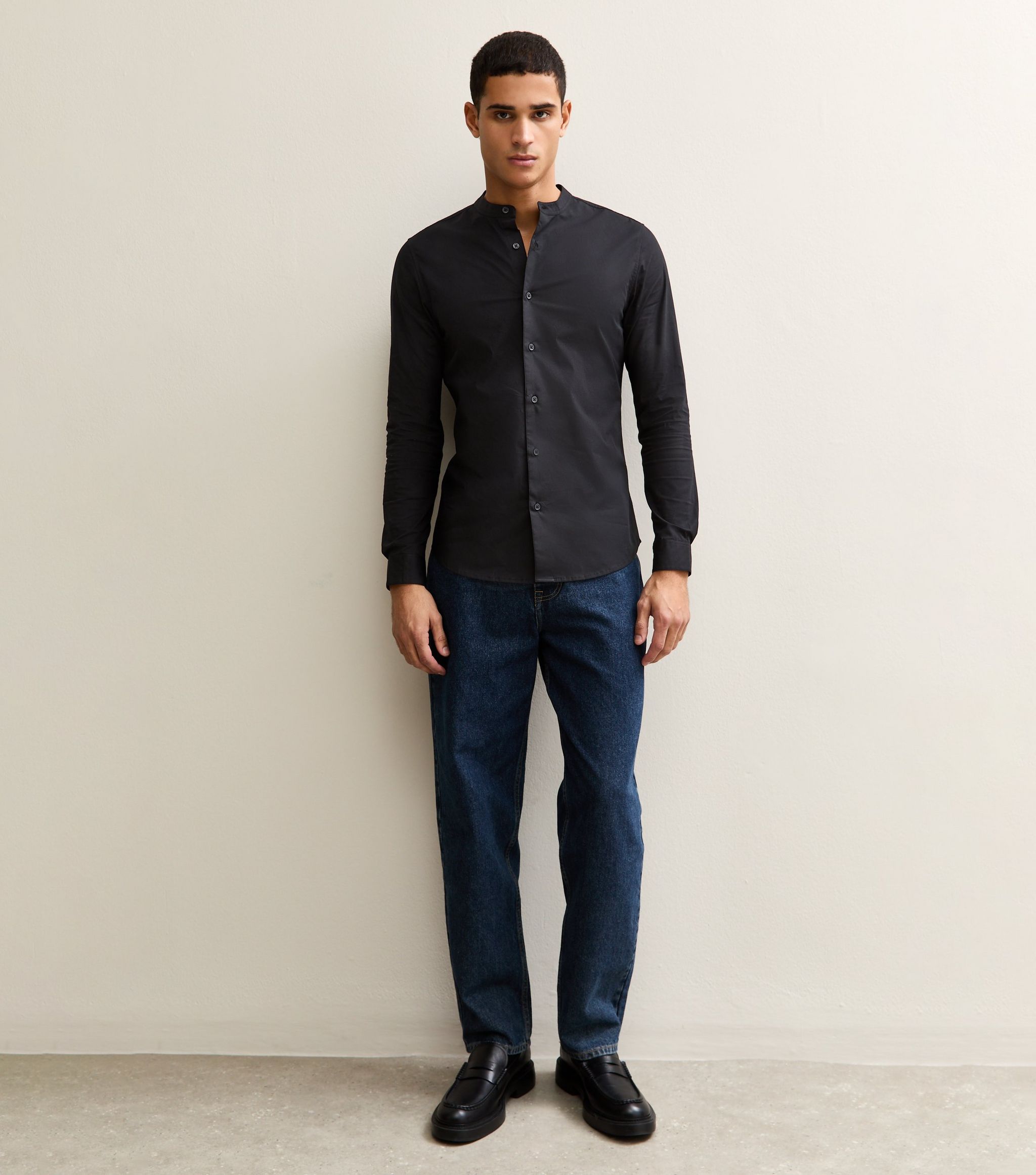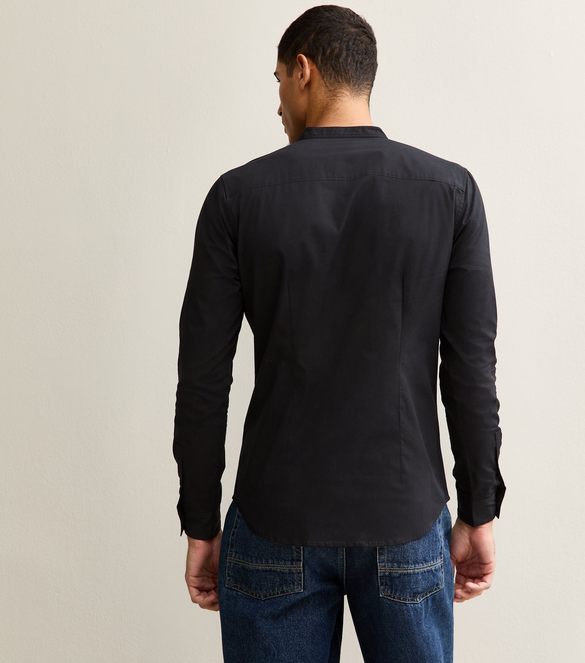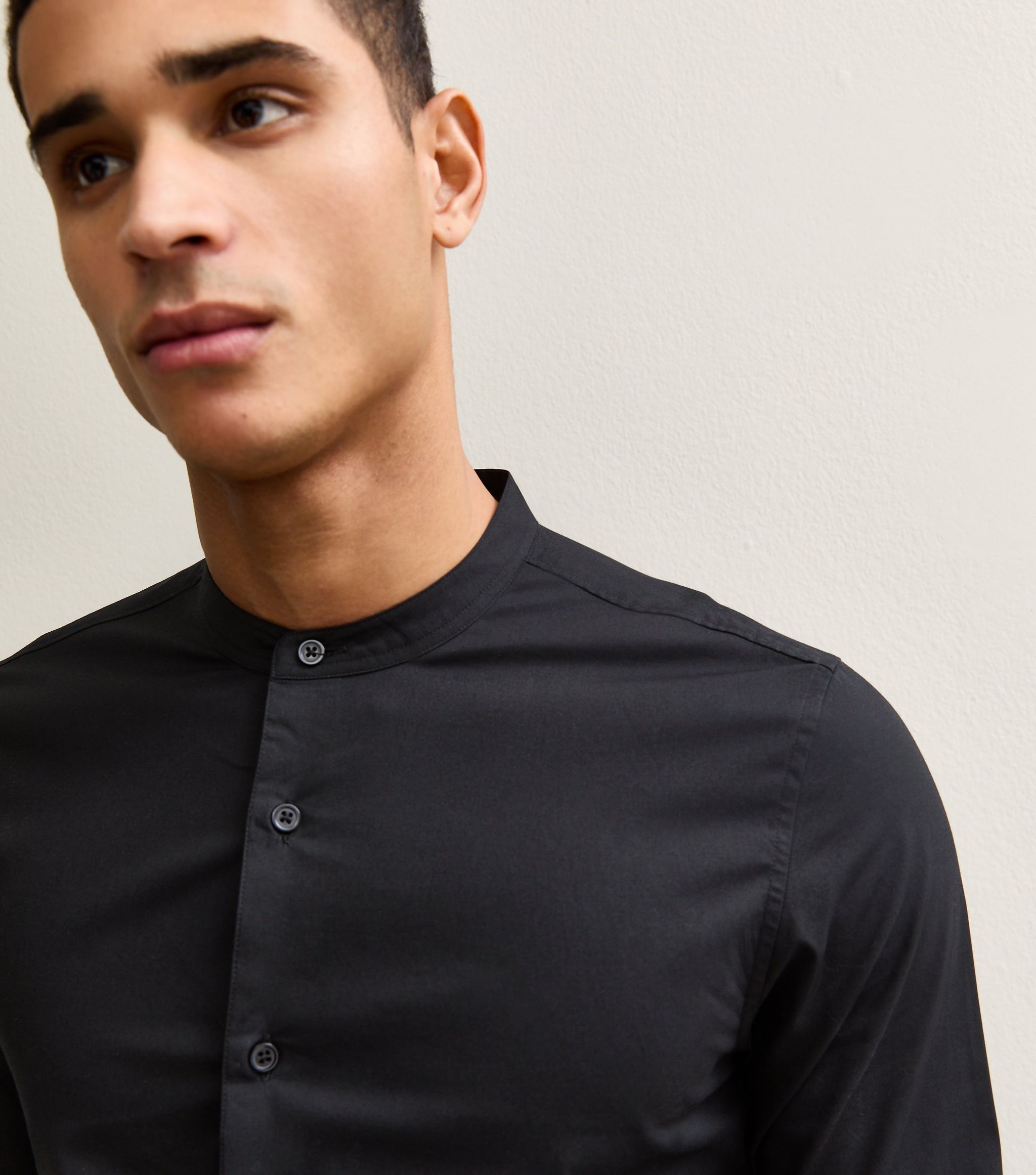 Black Muscle Fit Cotton Poplin Grandad Shirt