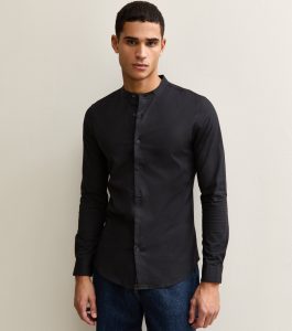Be the first to review “Black Muscle Fit Cotton Poplin Grandad Shirt”