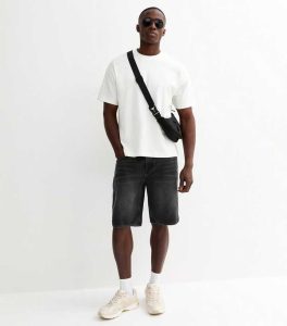 These dark grey denim shorts are your go-to for your holiday wardrobe. They have a relaxed Bermuda style and front and back pockets to hold all your things.
