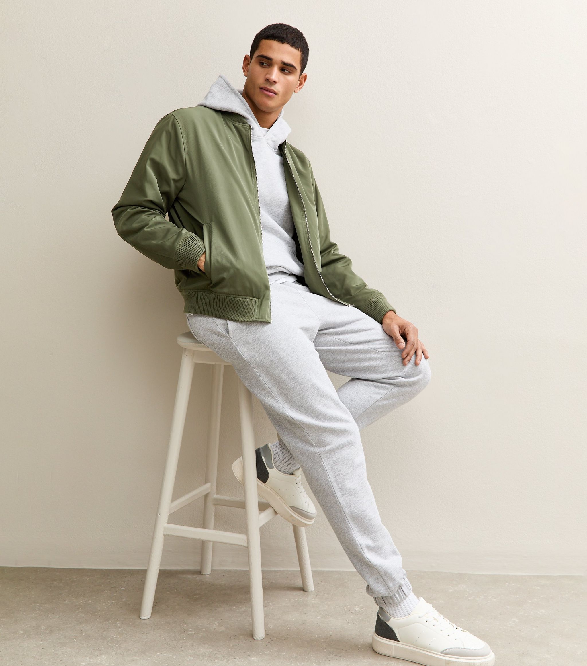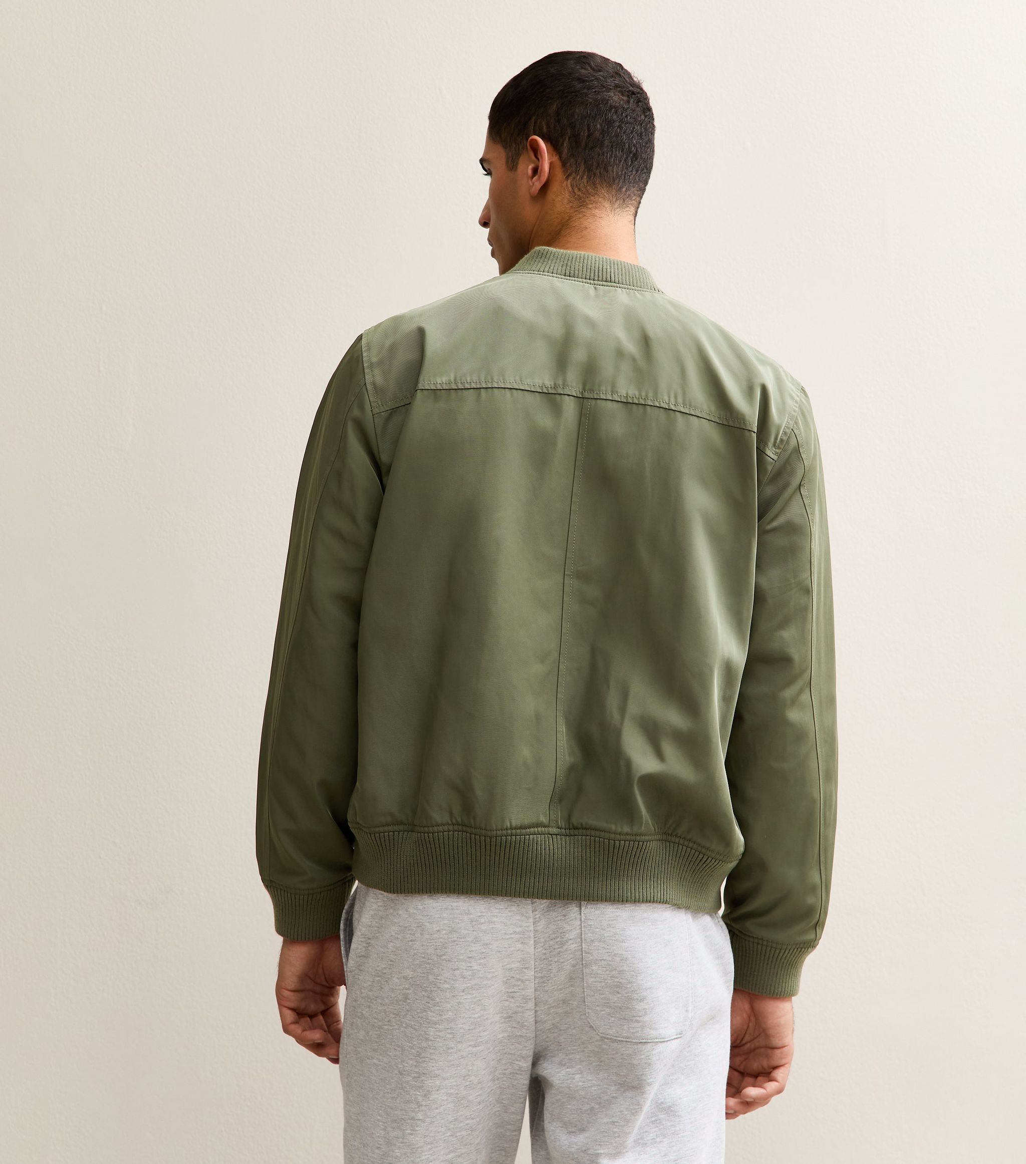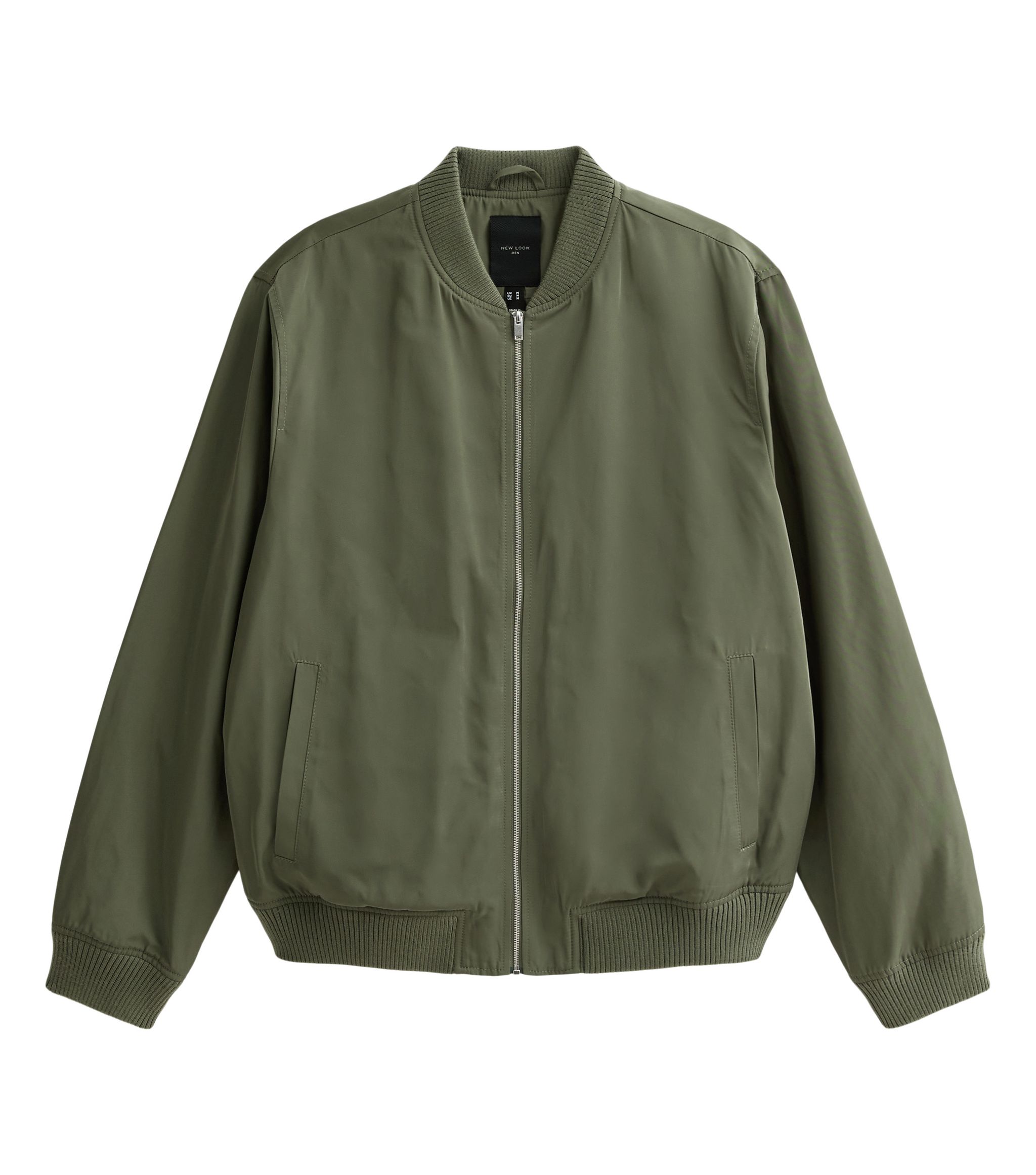 Add a sporty layer to your off-duty outfits with this dark khaki bomber jacket. The zip-up style is made from woven tech fabric for a matte finish.