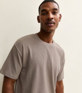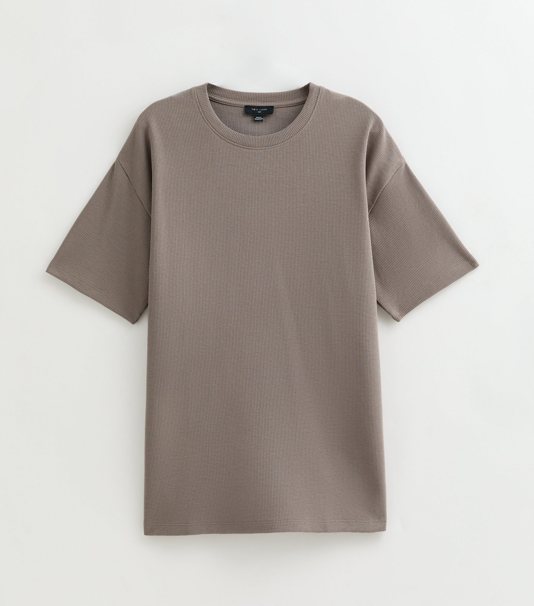 Scaled to oversized dimensions, this mink T-shirt has an oversized fit and waffle texture for a tactile twist.
