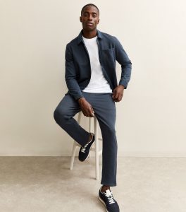 This navy overshirt is perfect for work days. Pair with the matching trousers for simple coordination that is effortless.